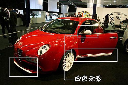 Veloce的外觀與之前的描繪圖有所區(qū)別,因該說(shuō)好看得多。Veloce在標(biāo)準(zhǔn)版MiTo單一紅色調(diào)的基礎(chǔ)上,將前唇、尾翼、反光鏡和側(cè)裙等部分涂成白色,活力十足,而前擋風(fēng)玻璃上檐的“意大利國(guó)旗”,很是醒目。