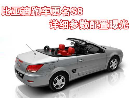 近日,比亞迪首款硬頂敞蓬轎車F8將更名為S8,加入比亞迪S系運動型轎車行列。比亞迪汽車方面表示,S8是一款運動味十足的產品,這也是更名的主要原因。相比F系而言,S系顯然更加適合這款車SPORT的風格。另據了解,這款跑車將在車展上以S8新名展出,車展之后將擇期推向市場。