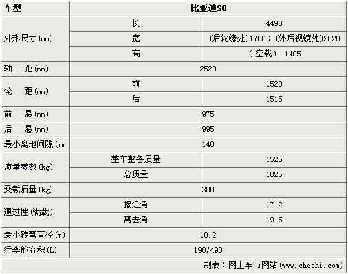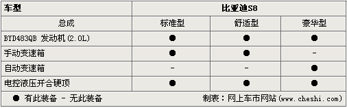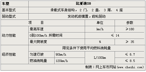 S8預計將有三種款型:標準型、舒適型、豪華型,搭載的是比亞迪自主研發(fā)的BIVT 2.0L發(fā)動機,最高輸出功率110/6000kw/rpm,最大扭矩195/4000Nm/rpm,有手動、自動變速箱可選。