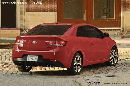 這款Forte Koup整體沿用了Forte動(dòng)感時(shí)尚的外觀造型,并且在流線(xiàn)上更加富有沖擊力。寬大的進(jìn)氣口以后后方的擾流板和雙排氣管顯示出了足夠的侵略性。