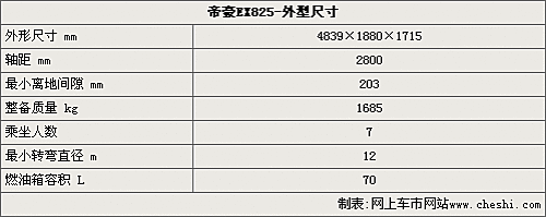 從帝豪EX825的車型尺寸來(lái)看,這款大型SUV的車長(zhǎng)達(dá)到了4839毫米、寬度為1880毫米、高度為1715毫米。而且這款車的軸距也達(dá)到了2800毫米,采用7座的設(shè)計(jì),從這些數(shù)據(jù)來(lái)看,這款新車不僅是以豪華為主要設(shè)計(jì)方向,也注重了整車的實(shí)用性。