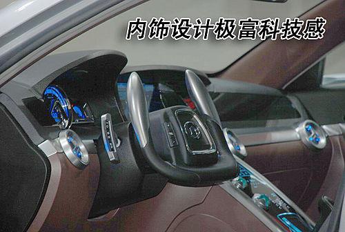 在內(nèi)飾方面,長城CHC011的方向盤采用極富未來科技?xì)庀⒌脑O(shè)計風(fēng)格,雖然看上去很拉風(fēng),但卻一點也不實用。另外,內(nèi)飾有很多地方都采用藍(lán)色背景光的設(shè)計,展示了整車在科技方面的造詣。