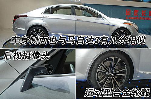 長城CHC011的車身側(cè)面也與老款馬自達(dá)3有幾分相似,值得一提的是,這款車型的腰線從車頭貫穿車尾,一路上揚(yáng)的線條顯得整車非常動感。長城CHC011采用后視攝像頭,內(nèi)部帶有影像系統(tǒng),輪轂采用運(yùn)動氣息十足的合金輪轂。