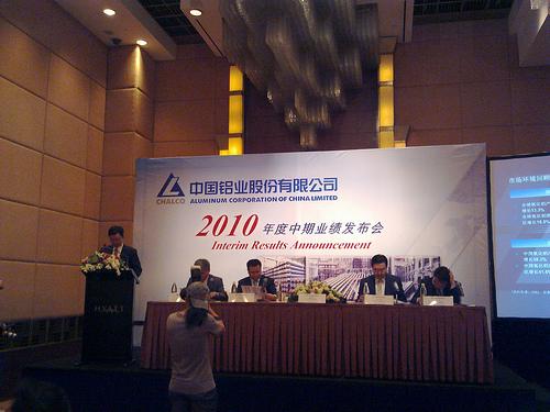 8月24日中國鋁業(yè)2010中報(bào)業(yè)績發(fā)布現(xiàn)場。新民網(wǎng)記者卜春艷 現(xiàn)場回傳
