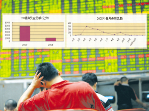 從2008年1月1日至今,上證綜指從高點5522點跌至12月12日的1954點,下跌幅度超過60%。市場深幅調(diào)整不僅使投資者“巨虧”,同時也讓IPO規(guī)模大幅縮水。