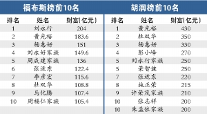 繼本月初胡潤“率先”公布《2008胡潤百富榜》之后,記者昨日在《福布斯》中文版上也看到了其《2008年中國富豪榜》,或許刻意強調與胡潤的區(qū)別,或許這一個月來全球資本市場動蕩影響確實不小,福布斯的榜單,不僅前10名與胡潤座次“大變樣”,就連“身家”也是相差甚遠。福布斯昨日披露的首富劉永行在胡潤榜單中僅列第5,胡潤的首富黃光裕也被福布斯放在第2的位置上,而財富總額也由胡潤榜中的430億元驟降至183.6億元。另外,楊惠妍在胡潤榜里財富總額達330億元,但在福布斯榜里是151億元。福布斯制榜人指出,富豪的財產是根據最新股價得出的。