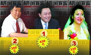 今年將首次有1000位富豪上榜,比起去年多了足足200人,系列子榜共有14個(gè)。提前曝光的今年前三強(qiáng)中,39歲的國(guó)美集團(tuán)董事局主席黃光裕以430億元的身家問(wèn)鼎中國(guó)首富,這也是他繼蟬聯(lián)2004—2005年中國(guó)首富后,第三次當(dāng)上中國(guó)首富。在“胡潤(rùn)百富榜”十年的歷史中,除了黃光裕之外,只有榮智健家族曾三次當(dāng)首富。評(píng)價(jià)黃光裕,胡潤(rùn)表示,“他的最大特點(diǎn)是對(duì)自己企業(yè)的戰(zhàn)略模型和戰(zhàn)略計(jì)劃很清晰!