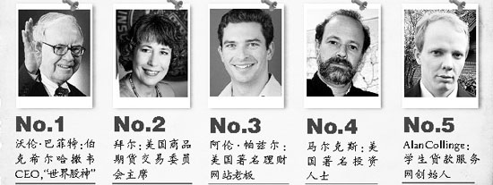 而前美聯(lián)儲(chǔ)主席艾倫·格林斯潘位列第八。格林斯潘令世界經(jīng)濟(jì)持續(xù)增長,被尊稱為“藝術(shù)大師”。但是2008年秋,格林斯潘自由放任的經(jīng)濟(jì)政策飽受責(zé)難。美國媒體認(rèn)為他現(xiàn)在應(yīng)該做的不是表示驚訝,而是向美國道歉。