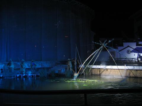 昨晚,可容納千人的《四季周莊》觀眾席座無虛席,演出的三個(gè)篇章--漁歌、漁婦、漁燈、漁作表現(xiàn)的“水韻周莊”;以春的《雨巷》、夏的《采藕》、秋的《豐收》、冬的《過年》反映的“四季周莊”;迎財(cái)神、打田財(cái)、阿婆茶、水鄉(xiāng)婚慶展示的“民俗周莊”,場(chǎng)面恢宏,江南水鄉(xiāng)文化的獨(dú)有性深深吸引著海內(nèi)外游客眼球。