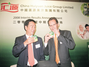匯源果汁(01886.HK)半年業(yè)績說明會昨日在香港召開,公司主席兼總裁朱新禮因參加其他會議而缺席,代表公司回答媒體提問的公司副總裁兼首席財務(wù)官吳育強表示,可口可樂收購匯源果汁的價格是經(jīng)過慎重考慮,并且得到三大股東同意的。