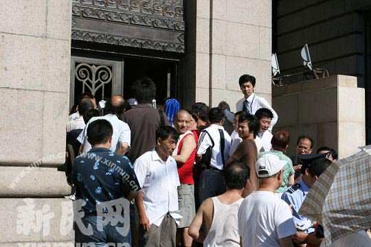 7月9日上午8點半,新民網(wǎng)記者途徑中行上海分行外灘支行時,發(fā)現(xiàn)大批市民聚集在銀行門口。有市民表示為兌換奧運(yùn)紀(jì)念鈔他排隊一晚,卻在開門前被告知已經(jīng)兌換完畢,情緒非常激動,銀行工作人員正在做解釋工作。