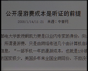 2008年1月22日,多年來(lái)備受質(zhì)疑的手機(jī)漫游費(fèi)終于踏上了破冰之旅,在北京河南大廈四層的國(guó)際會(huì)議廳里,降低移動(dòng)電話國(guó)內(nèi)漫游通話費(fèi)上限標(biāo)準(zhǔn)聽(tīng)證會(huì)如期舉行。而會(huì)場(chǎng)外的狹窄通道,早已被各路媒體圍得水泄不通,大家最關(guān)心的問(wèn)題莫過(guò)于“漫游”在公眾視野范圍外的漫游費(fèi)成本是否在聽(tīng)證會(huì)上予以公開(kāi)?