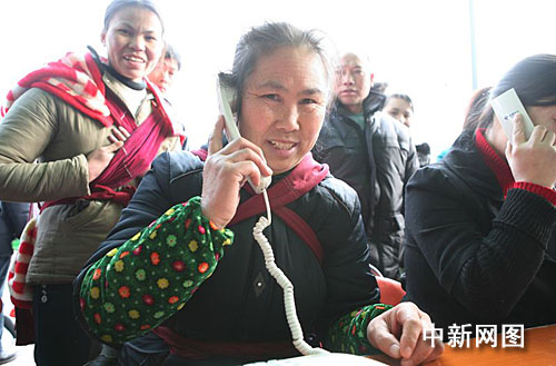 中新網(wǎng)杭州1月30日電(記者童靜宜 通訊員葉周 劉寰平) “杭州這里下雪,車子開(kāi)不了。過(guò)兩天就回來(lái)了,別擔(dān)心!”在城站火車站的中國(guó)電信服務(wù)點(diǎn)上,一位湖北武昌的民工正在通過(guò)免費(fèi)公話向千里之外的親人報(bào)著平安。