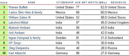 墨西哥電信大亨卡洛斯·斯利姆·埃盧(Carlos Slim Helu)個人資產(chǎn)達600億美元,位居全球第二位,而微軟主席比爾蓋茨雖然在過去13年里一直蟬聯(lián)首富桂冠,但其資產(chǎn)因微軟股價下跌而縮水為580億美元僅屈居第三。