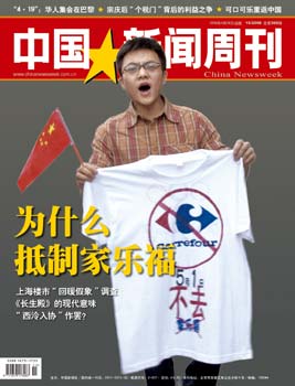 這是21世紀(jì)初中國(guó)民眾第三次大規(guī)模抵制洋貨,矛頭指向法國(guó)在中國(guó)最真實(shí)的存在——遍及30多個(gè)城市、擁有112家分店的家樂(lè)福超市。傳導(dǎo)鏈條則是人們熟悉的渠道——網(wǎng)絡(luò)社區(qū)、QQ、MSN。 事件發(fā)生后,《中國(guó)新聞周刊》記者前往北京、昆明、武漢等地,對(duì)“抵制家樂(lè)福”的人群、原因和背景進(jìn)行了調(diào)查,這就是本期《中國(guó)新聞周刊》的封面故事。