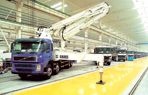 中聯(lián)重科的泵車生產(chǎn)線