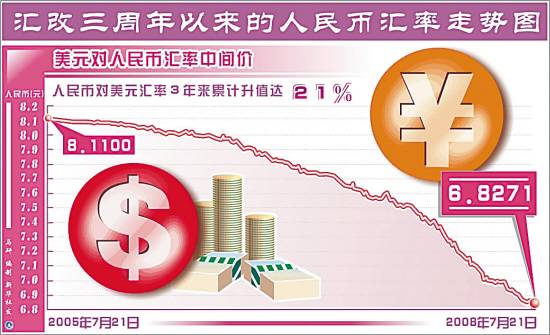 圖:匯改3年 人民幣對(duì)美元升值幅度已超過21% 圖片來源:錢江晚報(bào)