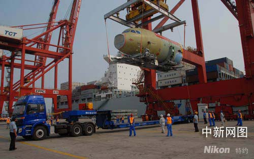 中新網(wǎng)天津7月24日電(胡志強(qiáng) 吳慧慧)裝載著第一批空客A320大部件的“中遠(yuǎn)西雅圖”輪,由德國漢堡港駛抵天津港,今天十五時(shí)開始卸船、通關(guān)作業(yè)。