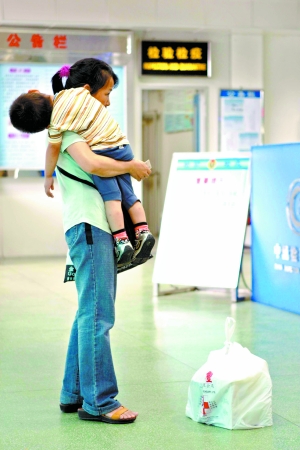 媽媽抱著孩子赴港買奶粉。阮曉光攝