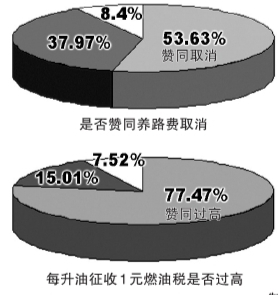 在是否贊同養(yǎng)路費(fèi)取消,改成一升油征收1元燃油費(fèi)的調(diào)查中,83043人贊成費(fèi)改稅,占53.63%,有58799人反對費(fèi)改稅,占37.97%,而另有13003人表示不好說,占8.4%。該調(diào)查顯示,到記者截稿為止,贊同費(fèi)改稅的網(wǎng)民超過半數(shù),顯著高于其他兩種意見。
