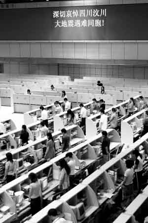 昨天一早,一位“夢(mèng)不見(jiàn)了”的投資者最先在網(wǎng)上發(fā)帖。這篇題為“全國(guó)哀悼日(19日至21日)我們鎖倉(cāng)為汶川地震遇難同胞致哀”的帖子這樣寫(xiě)道:“5月19日至21日是全國(guó)哀悼日,讓我們股民也用自己的行動(dòng)來(lái)表達(dá)對(duì)汶川地震中遇難同胞的深切哀悼,讓我們共同鎖倉(cāng)三天!為災(zāi)區(qū)同胞獻(xiàn)上自己的愛(ài)心,為災(zāi)區(qū)同胞祈福!”黑色加粗的字體、簡(jiǎn)單樸素的語(yǔ)言,卻道出了大批投資者的心聲。在19日至21日的全國(guó)哀悼日中,投資者的眼中已沒(méi)有股市。