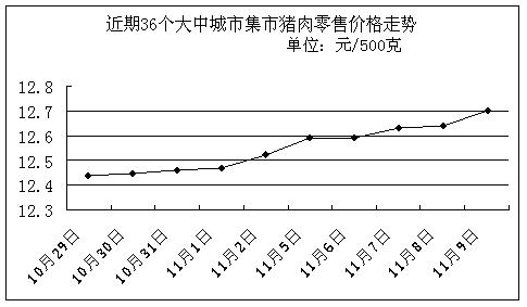 中新網(wǎng)11月12日電 國家發(fā)改委網(wǎng)站發(fā)布消息稱,據(jù)國家發(fā)展改革委價(jià)格監(jiān)測中心監(jiān)測,上周(11.5-11.9,下同)全國36個(gè)大中城市豬肉(精瘦肉)集市平均零售價(jià)格每500克為12.63元,比上期(10.29-11.2,下同)上漲1.28%。