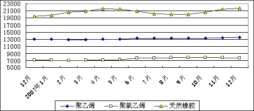主要化工產(chǎn)品價格有所上漲。12月份,36個大中城市聚乙烯、天然橡膠平均價格分別為13613元/噸、21716元/噸,比上月分別上漲1.53%、1.36%。聚氯乙烯平均價格為7777元/噸,比上月下降0.45%。