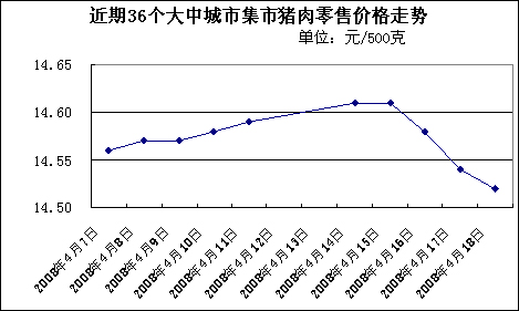 中新網(wǎng)4月21日電 中國國家發(fā)改委網(wǎng)站消息,據(jù)發(fā)改委價(jià)格監(jiān)測(cè)中心監(jiān)測(cè)顯示,上周(2008.4.14-2008.4.18,下同)中國36個(gè)大中城市集市豬肉(精瘦肉)平均零售價(jià)格每500克為14.57元,與前一周(2008.4.7-2008.4.11,下同)持平。