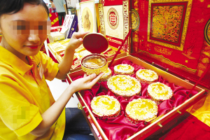 營業(yè)員正展示價(jià)值2888元的月餅。 圖片來源:重慶商報(bào)