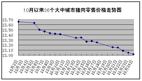中新網(wǎng)10月27日電 據(jù)國家發(fā)改委網(wǎng)站消息,上周(10月20日~10月24日)全國36個大中城市集市、超市豬肉(精瘦肉)平均零售價格每500克為13.09元,與前一周(10月13日~10月17日,下同)相比下降1.58%。