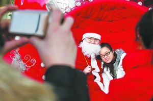 國友人聚集的地方,馬路上車燈紅彤彤一片。記者從車上電臺里聽說,有不少急性子怕堵車的師傅都打算提前收工,回家睡覺“慶祝”平安夜。