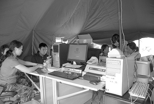 據(jù)現(xiàn)場(chǎng)工作人員介紹,現(xiàn)在如果市民在災(zāi)難中遺失了銀行卡和存折,只憑本人身份證可以在帳篷銀行辦理掛失,但是取現(xiàn)暫時(shí)無法實(shí)現(xiàn)。“根據(jù)特事特辦的原則,我們總行正在根據(jù)最新情況研究處理方案,希望能為更多的市民提供服務(wù)!
