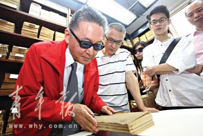 昨天一天可以概括為李敖在滬的“懷舊之旅”,因?yàn)檫@天李敖對(duì)于上海的拜訪,幾乎是從整個(gè)中國(guó)的古籍中穿梭而來(lái),從上海博古齋到中共一大會(huì)議舊址,再到上海圖書館;尤其是在上海圖書館的簽名題字“頹乎其間,人書俱老”。他說(shuō):“站在這里,書有很久遠(yuǎn)的歲月,它老了,而我也老了。”