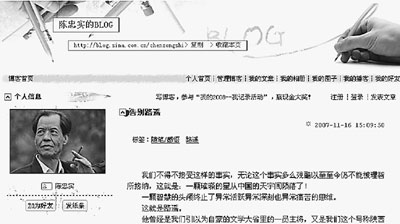 賈平凹跟陳忠實(shí)的遭遇相同!熬W(wǎng)站編輯事前給我打過(guò)電話,說(shuō)要把我的那篇文章放到網(wǎng)上去,但沒說(shuō)是開博客,現(xiàn)在我已叫他們把博客關(guān)了!辟Z平凹告訴記者。