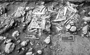 2003年到2006年,黃萬波與法國科考隊在龍骨坡發(fā)現(xiàn)了一個3平方米左右的化石層。重疊堆積著大量的動物前后腿化石,有明顯的石器砸削痕跡,就此判斷有人類活動。