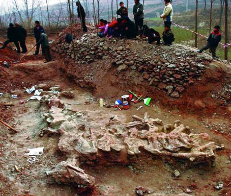 這幾天,地處偏僻山溝的洛陽市汝陽縣劉店鄉(xiāng)郝嶺村成了遠(yuǎn)近聞名的明星村,每天都有數(shù)不清的人前來,一睹剛剛被發(fā)現(xiàn)的“恐龍”風(fēng)采。