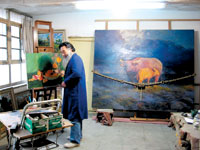 楊大味告訴記者,今年海淀區(qū)要成立一個(gè)藝術(shù)園區(qū),要他們搬過去。已經(jīng)同他說了好幾次。“藝術(shù)家們不是沒有選擇。之所以至今還沒人離開宋莊,是因?yàn)樗吻f凝聚了我們太多的堅(jiān)持,每個(gè)人都會(huì)對(duì)這種堅(jiān)持抱有依戀!背繄(bào)記者 鄒樂文并攝