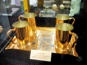 在展覽中,1974年2月贊比亞總統(tǒng)卡翁達(dá)贈送給中共中央主席毛澤東的紅銅茶具意義非凡。茶具有一盤四杯,由紅銅制成。贊比亞銅儲量約占世界銅儲量的15%,人均銅產(chǎn)量位居世界第一,贊比亞因此有“銅礦國”之稱。有鑒于銅制品最能體現(xiàn)國家和民族特色,贊比亞領(lǐng)導(dǎo)人把銅制工藝品作為贈送外國領(lǐng)導(dǎo)人的首選禮品。