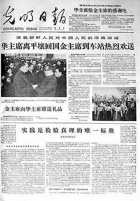 就這樣,胡福明寫得很細(xì),改了又改。瞌睡了,就把三張椅子拼起來睡一會。經(jīng)過了五六天,提綱寫成了,妻子也出院了。幾經(jīng)修改,當(dāng)年8月,題為《實踐是檢驗真理的標(biāo)準(zhǔn)》(見報時,題目被光明日報編輯加了“唯一”二字)的8000字長文寫成。胡福明想起此前光明日報哲學(xué)組編輯王強華的約稿,于是9月初將文章寄到了北京。