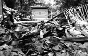 四川綿陽李白故居隴西院山門在此次地震中完全倒塌。 邱偉榮攝