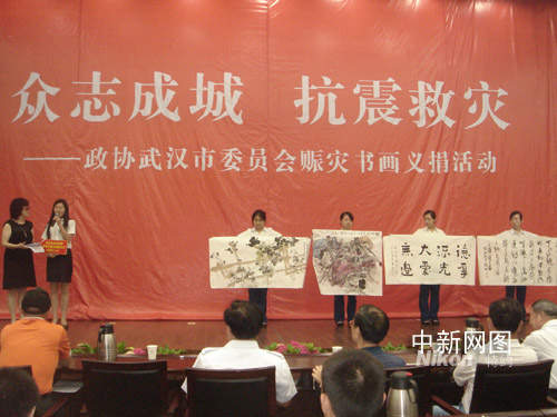 中新網(wǎng)武漢5月23日電 (記者 徐金波)20多位武漢市政協(xié)23日揮毫潑墨、寫字作畫,通過義捐、拍賣等方式再次為四川地震災區(qū)籌集到200多萬元重建善款。