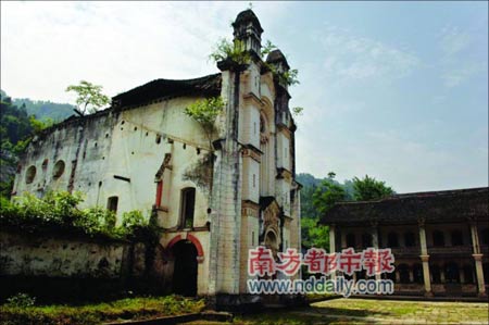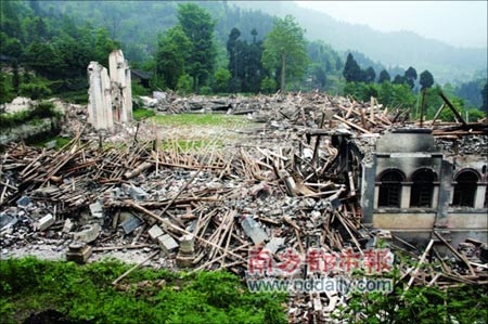 彭州領(lǐng)報修院 俗稱“白鹿上書院”,是培養(yǎng)天主教傳教士的神哲學(xué)院,完工于1908年,在地震中建筑全部垮塌。