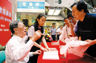 昨天上午,著名作家王蒙來到廣州購書中心,為《王蒙自傳》(花城出版社出版)第三部《九命七羊》簽售。現(xiàn)場王蒙仍是一派快人快語作風(fēng),其幽默、睿智而又不乏銳氣的表達征服了“粉絲”們的心。