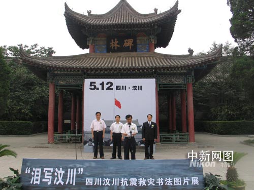 中新網(wǎng)西安6月6日電(記者 冽瑋)面對(duì)汶川特大地震災(zāi)難,書法能做什么?今天在西安碑林博物館舉辦的《“淚寫汶川”抗震救災(zāi)書法圖片展》,以五十四幅飽含激情的書法藝術(shù)作品,為人們?cè)忈屃酥袊嗽跒?zāi)難面前不屈不撓的頑強(qiáng),眾志成城的團(tuán)結(jié),大愛無疆的奉獻(xiàn)。