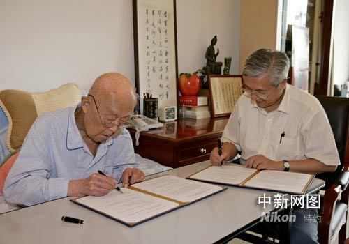 隨后,許智宏和季羨林一起簽署了“北京大學(xué)季羨林獎(jiǎng)助學(xué)金”設(shè)立協(xié)議,并向季老贈(zèng)予了捐贈(zèng)證書。許智宏表示,季老高尚的情操、嚴(yán)謹(jǐn)?shù)闹螌W(xué)態(tài)度以及病臥在床還心系學(xué)校的精神值得我們認(rèn)真學(xué)習(xí)、繼承和弘揚(yáng),我們一定會(huì)把這筆基金用好,為北京大學(xué)創(chuàng)建世界一流大學(xué)做出貢獻(xiàn)。(完)