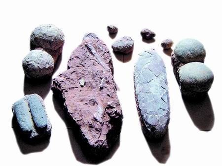 “這是村民們開(kāi)山修筑趙營(yíng)村至金花村‘村村通’公路時(shí)發(fā)現(xiàn)的。”張豐臣說(shuō),“目前,僅新修公路沿線兩公里范圍內(nèi)就發(fā)現(xiàn)有二十多窩這樣的恐龍蛋化石,估計(jì)實(shí)際蘊(yùn)藏量不下100窩。同時(shí)還發(fā)現(xiàn)了樹(shù)枝蛋、戈壁棱柱形蛋等十多種恐龍蛋化石。”在村部,張豐臣向記者展示了臨時(shí)保存的修路施工中拾到的蛋化石和龍骨化石。