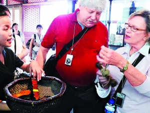 文化展開展首日就迎來不少什剎海地區(qū)的居民和外國游客,一對來自美國的夫婦對老物件十分感興趣,不時摸摸這個,試試那個,還坐上太師椅過了一回“主人癮”。記者與他們交談得知,這對美國夫婦是本屆奧運會女子100米仰泳銅牌獲得者瑪格麗特·赫爾策的父母。漢斯·赫爾策先生告訴記者,他們看完女兒的比賽便開始游覽北京,第一站來到什剎海就碰上了如此精彩的文化展覽!芭畠哼在備戰(zhàn)本周末的比賽,等比賽結(jié)束我們一定會帶她過來!睗h斯·赫爾策說。