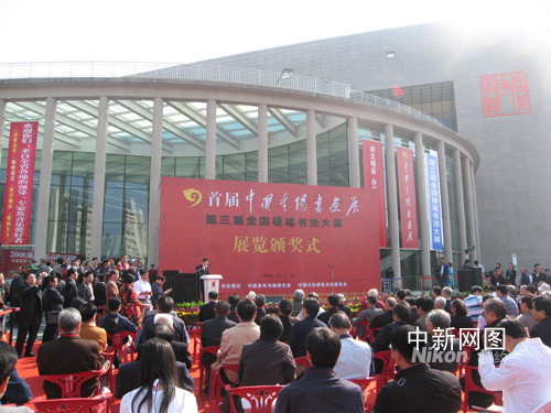 首屆中國重陽書畫展頒獎(jiǎng)儀式6日上午在湖北省藝術(shù)館舉行。作者:艾啟平