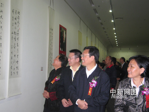 中新網(wǎng)武漢10月6日電 (艾啟平 魏開功)首屆中國重陽書畫展頒獎(jiǎng)儀式6日上午在湖北省藝術(shù)館舉行。中共湖北省委常委、省委宣傳部長李春明出席頒獎(jiǎng)儀式并為5位90歲以上老年書畫家頒獎(jiǎng),并與眾多老藝術(shù)家、書畫愛好者一起觀看了作品展。