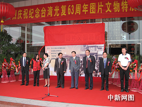 中新網(wǎng)10月25日電 (劉通 福建泉州報(bào)道)今日上午十時(shí)許,“紀(jì)念臺(tái)灣光復(fù)63周年圖片文物特展”在位于福建泉州的中國(guó)閩臺(tái)緣博物館開幕。全國(guó)臺(tái)聯(lián)會(huì)長(zhǎng)梁國(guó)揚(yáng)、福建省委宣傳部副部長(zhǎng)朱清等出席了儀式。